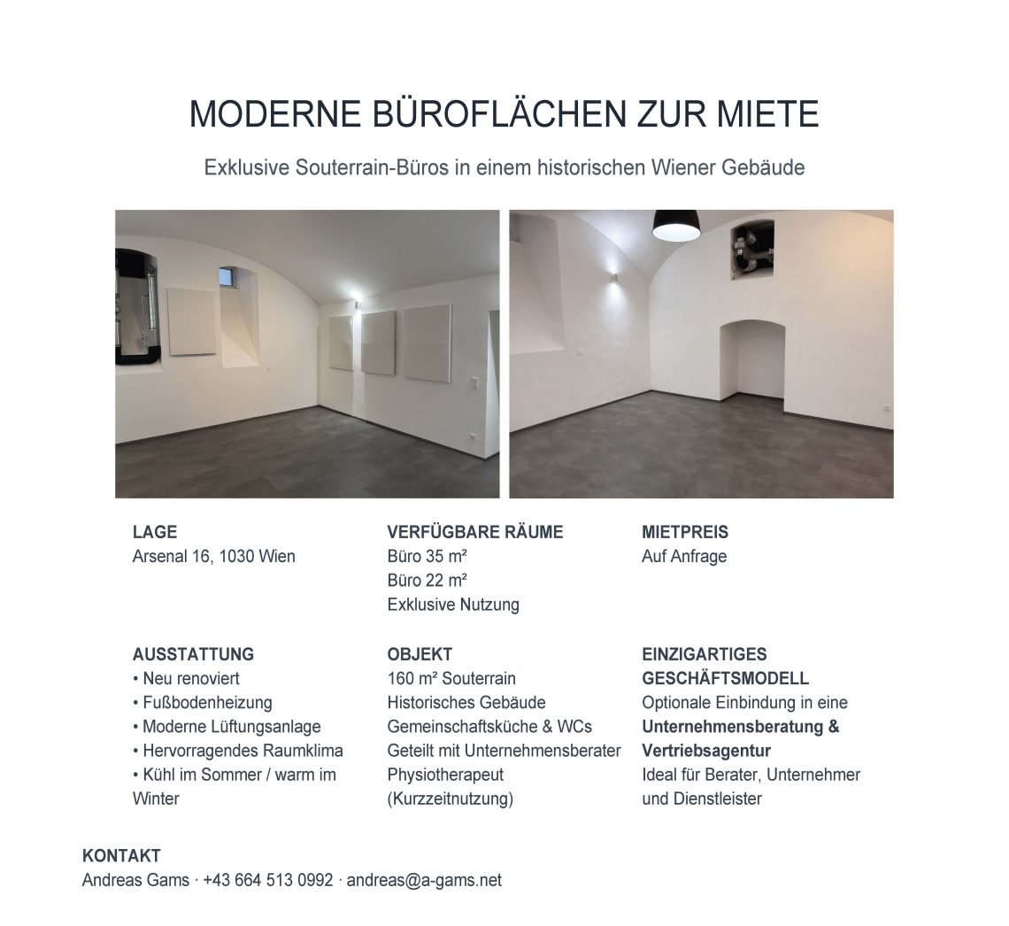Exklusive Souterrain-Büros im Arsenal 16 zu vergeben!