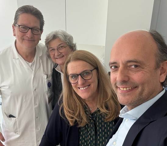von li.n.r.: Prim. Dr. Gerhard Vavrovsky, Vorstand der Abt. Physikalische Medizin und Rehabilitation, Herz Jesu Krankenhaus; Christine Reiterer, BR 3. Bez. Für NEOS, NEOSplus Kernteam, Ersatzmitglied Senior:innenrat Wien; Ulrike Königsberger-Ludwig, Staatssekretärin; Stefan Gara, NEOS Gemeinderat